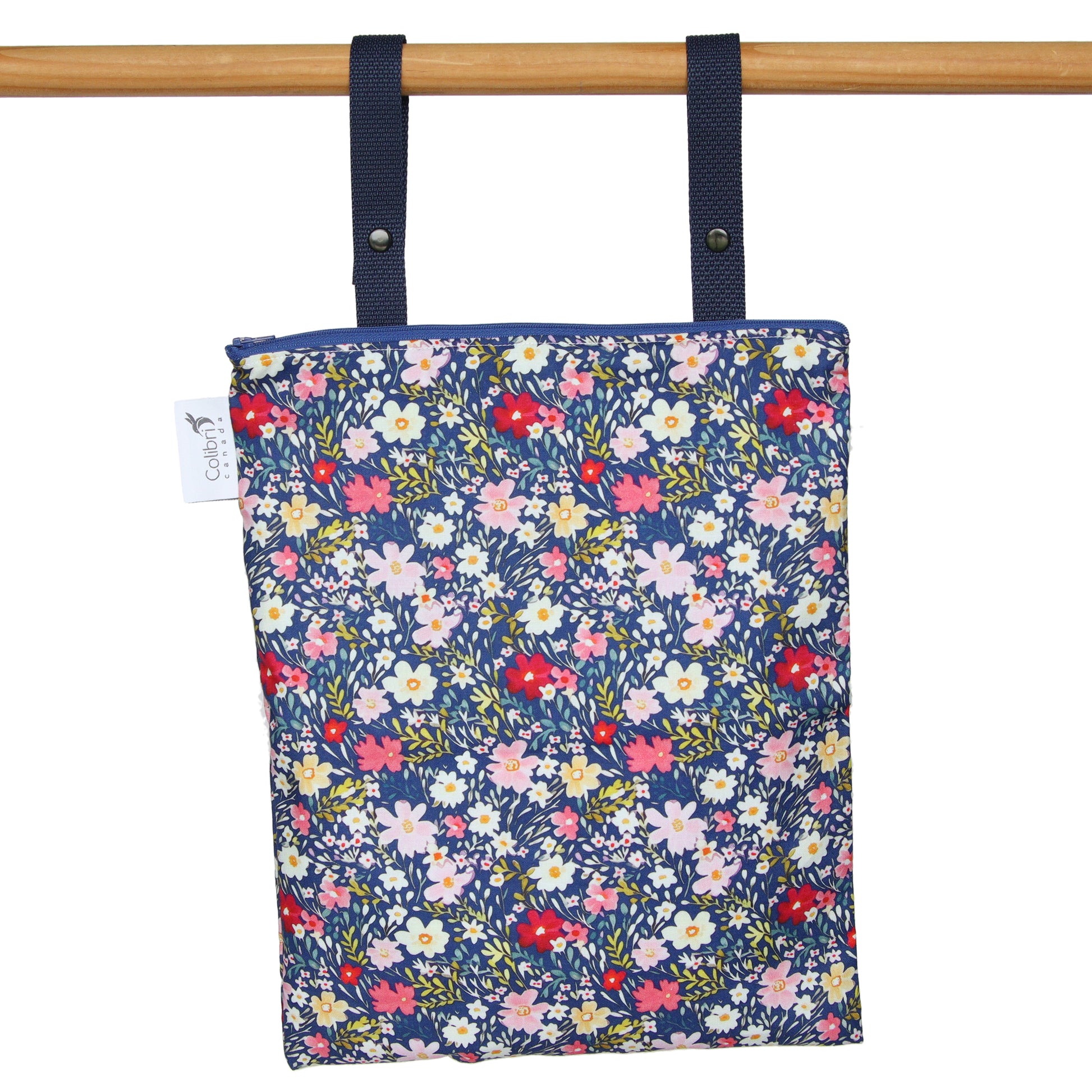 So many uses for one amazing bag! The Regular wet bag is great for camping, traveling, swimming, gym/dance clothes, kitchen laundry, dirty shoes…you name it! The two straps allow the bag to hang on towel rods, furniture, luggage, strollers, and more, or can be looped together to form a handle.